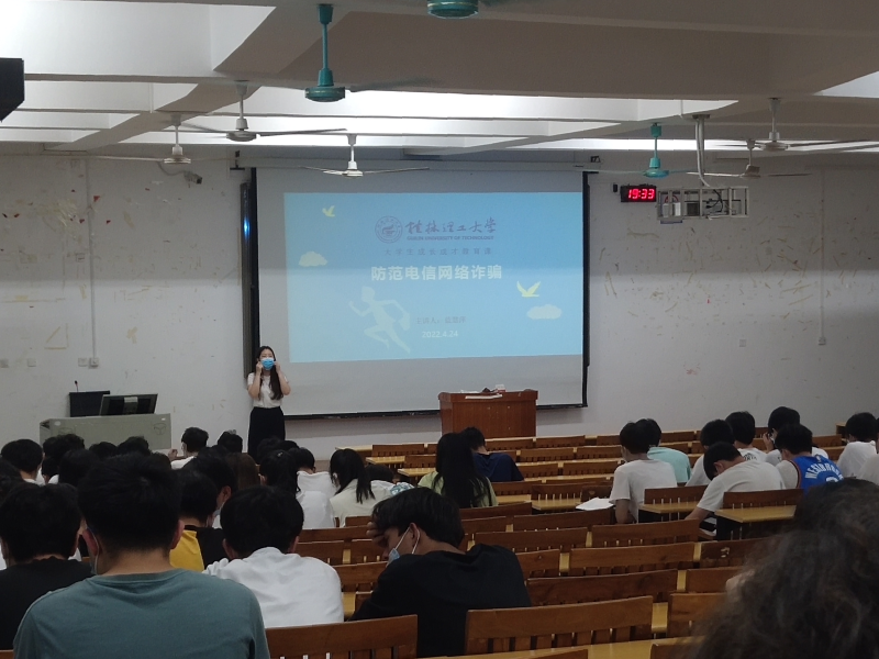 此次班会由辅导员蓝慧萍老师主持。班会开始后,蓝慧萍老师便讲了电信诈骗的手法和途径、电信诈骗造成的损失、常见的电信诈骗案例、常见的电信诈骗类型(网站贷款、虚假购物、刷单返利)等;并用多媒体给我们观看了有关电信诈骗的纪录片。随后,蓝慧萍老师又强调了我们的学习问题、师生间的交流沟通问题、各班班干对班级内的通知问题,以及疫情封校期间学生应学会调节心情、多运动、多与散步等。