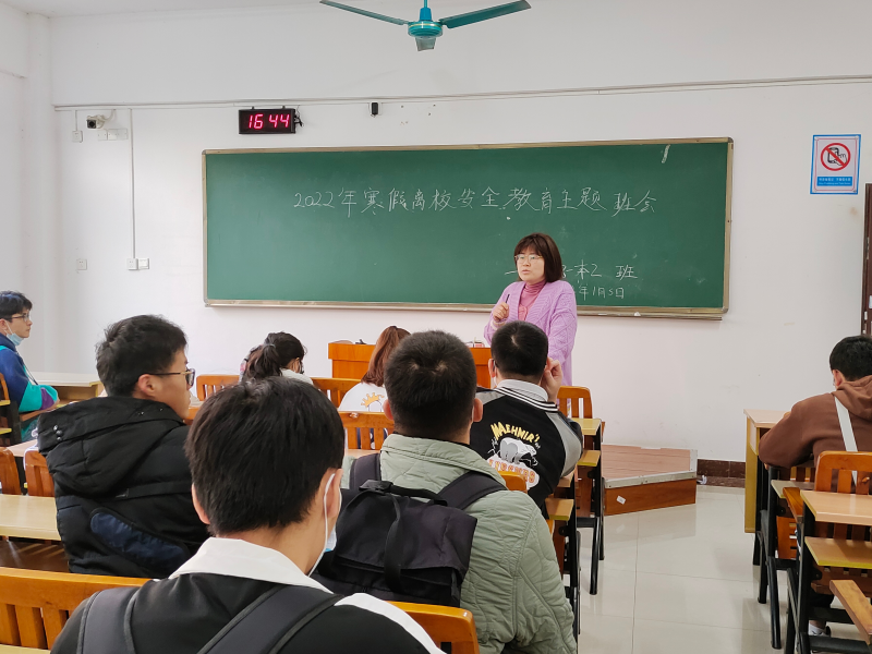 本次班会主要讲了寒假离校的安全问题,有如下几个方面:一、疫情防控安全。尽量减少聚会、尽可能避免到人群密集的场所。二、交通安全。年关将至,车流量增加,无论是走路、坐车、开车都要遵守交通法规、注意交通纪律。三、饮食安全。过年过节饮食方面相较于平时要丰富不少,在欢度佳节的同时,也要注意避免暴饮暴食,不食用三无食品。另外,黄老师还提到了同学们接下来的任务:毕业设计。对于毕设,要尽早进入正轨、并积极主动与老师沟通遇到的问题,在假期玩闹的同时,也不要忘记毕设任务。