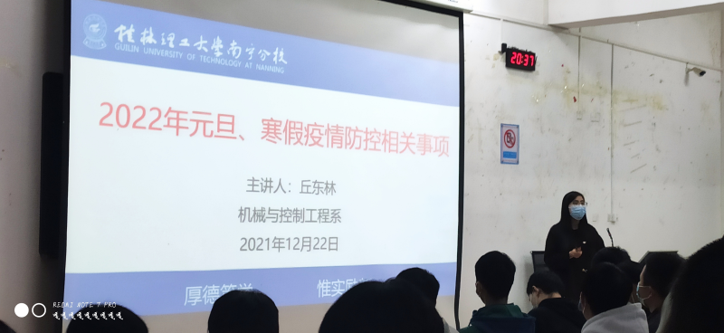 2021年11月22日下午19:30分整,我系智造19本-3班于启智楼8304召开元旦及寒假疫情防控主题班会,辅导员丘东林老师以及班级全体成员参加此次主题班会。