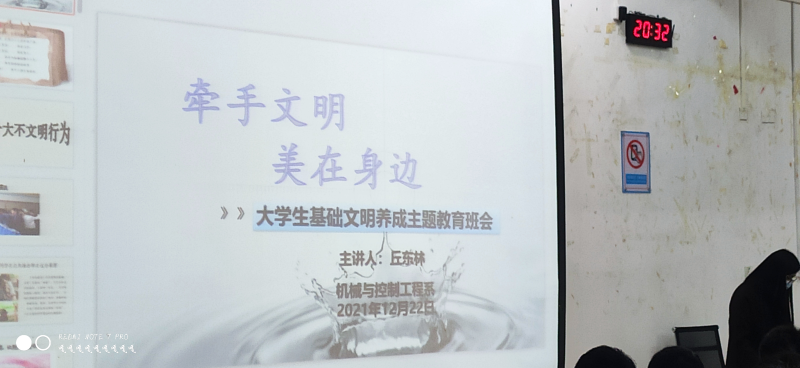 2021年11月22日下午19:30分整,我系智造19本-3班于启智楼8304召开大学生基础文明养成主题班会,辅导员丘东林老师以及班级全体成员参加此次主题班会。