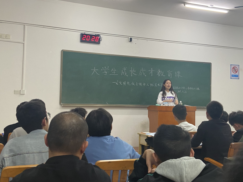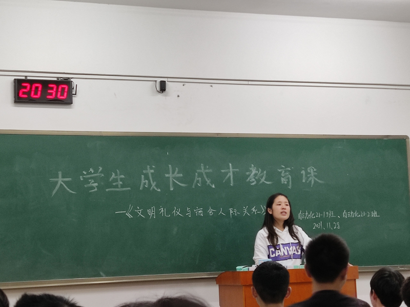 为了进一步加强同学们对文明礼仪的规范,以及促进同学们宿舍人际关系。11月28日晚上七点半,自动化21-1、2班于3303教室开展“文明礼仪与宿舍人际关系”的主题成长成才教育课。自动化21-1、2班全体同学出席本次活动,由辅导员蓝慧萍老师主持本次班会。