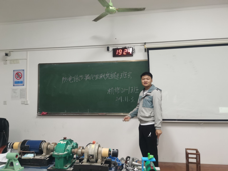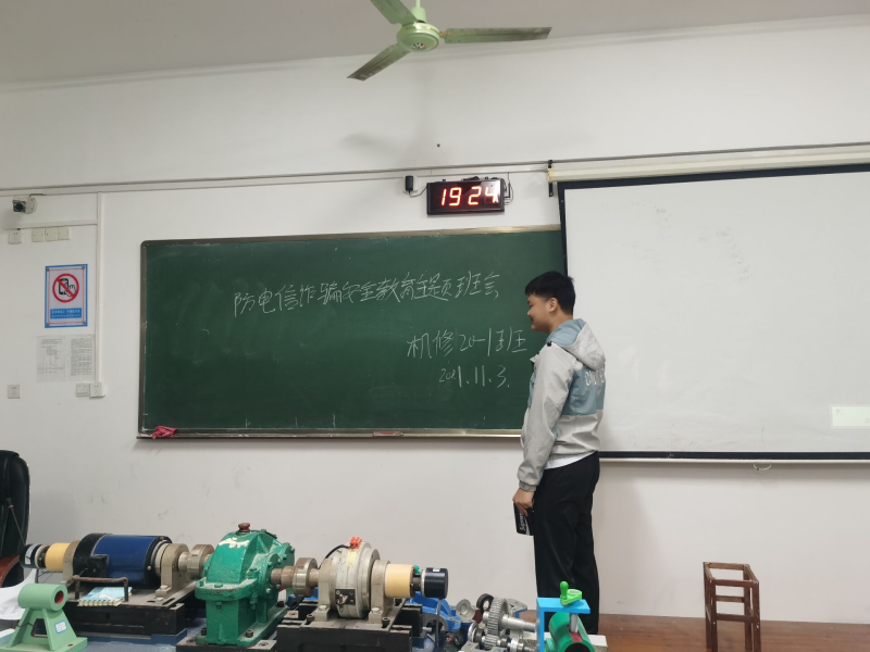 为了维护我们安静的学习环境,提升大学生的安全防范意识,使同学们能够在平时的学习工作及生活中不受诈骗分子的欺骗,掌握一定的防诈骗的技巧,使同学们面对诈骗能够安全应对,是非常有必要的。机修20-1班于2021年11月3日在3303召开以“防电信诈骗”为主题的班会