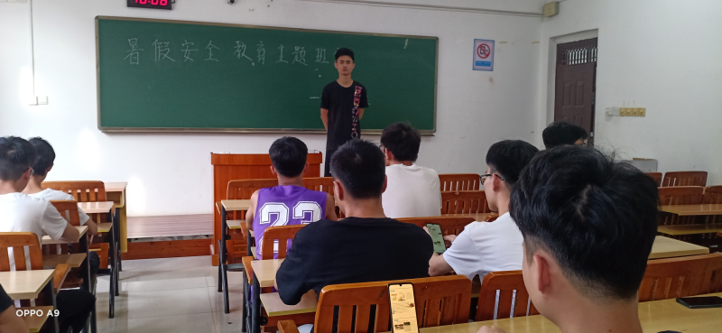 本次会议由离校安全、路途安全防范电信网络诈骗、假期安全,暑假实践安全和返校安全六部分展开。首先,提醒同学们离校前要做好宿舍卫生,妥善存放好个人贵重物品以及锁好门窗关闭水电。接下来,离校乘车时要注意乘车安全和保护自身财务,不坐三无车辆和不与陌生人搭话。暑假期间做实践活动的同学除了要注意告知家长实习地点外,还要注意识别骗子和疫情防控安全。同时注意作息规律,多帮忙做一下家务和锻炼。最后返校时要注意清点个人物品。至此本次班会取得了圆满成功。