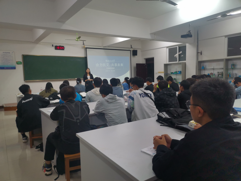 首先,丘东林老师通过PPT向我们讲述了艾滋病的性质,症状以及危害,重点介绍了艾滋病的传播途径和预防措施。我们了解到艾滋病的传播途径有性传播、血液传播和母婴传播;预防措施有坚持洁身自好,避免滥交,严禁吸毒,不与他人共用注射器,去正规医院就医,使用安全套等。让同学们更直观且深入的了解了艾滋病相关知识,并深刻意识到广泛开展预防艾滋病教育的深远意义。