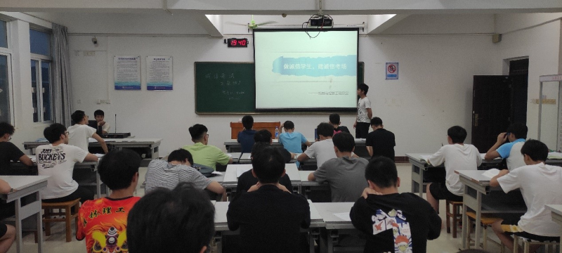 为增强同学们诚信考试意识,了解考试违规的相关法律法规,提高同学们自律意识,让考生认真复习,积极备考,以身作则,自觉遵守考场纪律,我系智造-本2班于6月6日晚上7点半,在藏修楼3502教室召开“诚信考试教育”主题班会班级全体成员参加。本次班会由纪律委员冯金泽主持,参与的老师有班主任韦宁照老师。