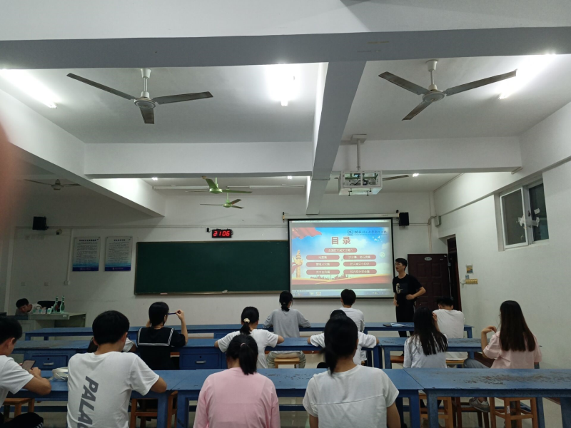模具20-2班于2021年5月25日晚21:00在3404教室举行“全国防灾减灾救灾”为主题的班会。由班长向同学们介绍各类自然灾害的形成和在发生自然灾害时如何更好地应对。内容包括地震篇、雷电火灾篇、洪水台风篇、沙尘暴泥石流篇、防灾减灾小知识以及校内校外安全篇。