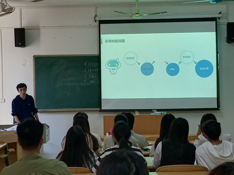 贝壳找房(深圳)科技有限公司于11月12日下午16时30分在校园宣讲室召开专场招聘会。吴先生代表贝壳找房(深圳)科技有限公司(以下内容将称呼为贝壳找房公司)作为此次主讲人。我系组织多名毕业生参加此次招聘会。