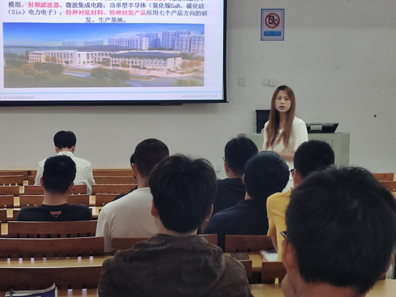 4月27日下午4:00,厦门三安光电科技集团在我校启智楼8303召开专场招聘会,我系组织多名同学参加本次招聘会。胡女士代表厦门三安光电科技集团做本次招聘会的宣讲。
