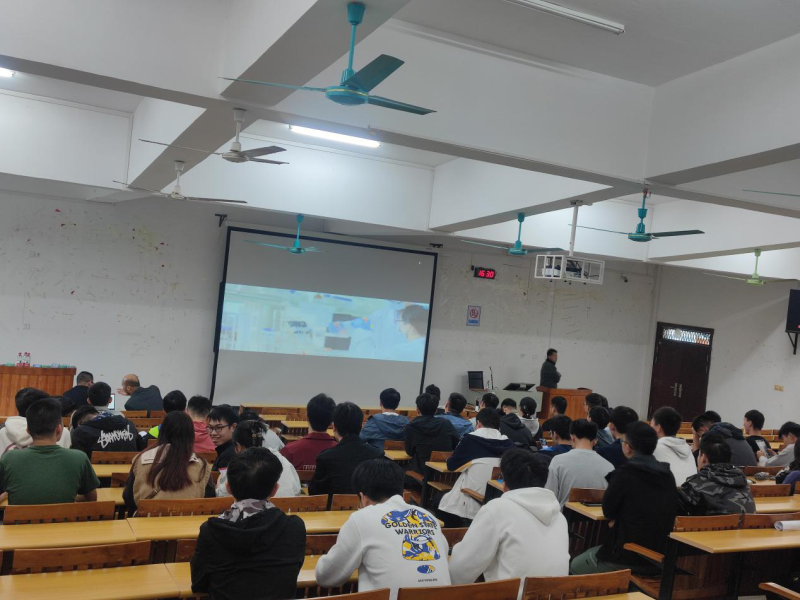 招聘会开始,袁先生给我们展示了昆山的简介。让同学们了解到昆山是一个怎样的地方。放完昆山简介后,袁先生开始播放六丰公司的宣传片。袁先生通过视频,PPT和宣讲等方式向同学们介绍了公司的发展历程和取得的成就,薪资待遇及继续深造、多边职业发展的机会。在介绍完公司情况后,袁先生就同学们的提问一一进行解答。