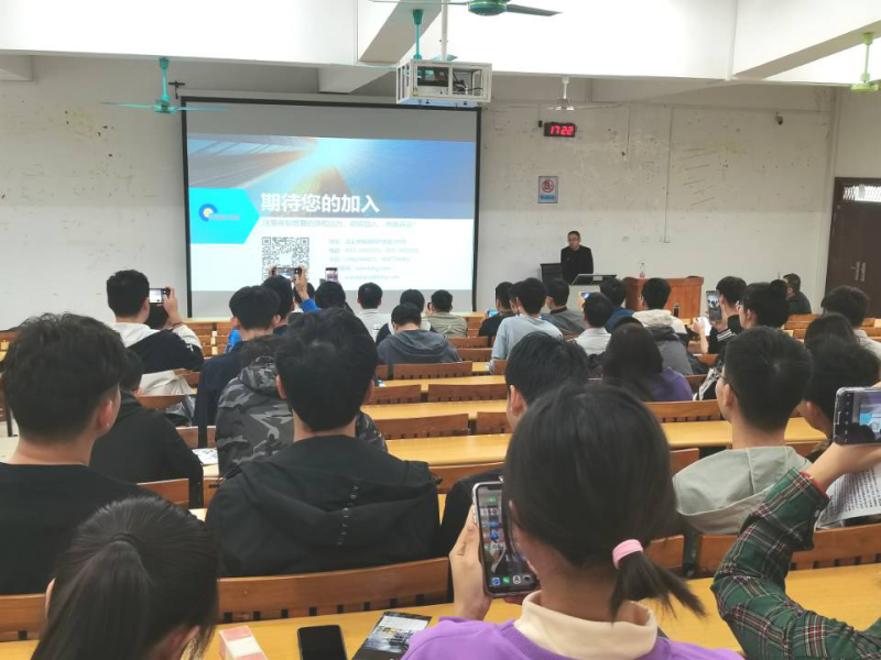 2021年10月21日星期四下午5:10分昆山泸光汽车电器股份有限公司(以下简称泸光汽电)在我校启智楼8301召开招聘会,我系组织多名同学参加本次招聘会。邬先生代表泸光汽电做本次招聘会的宣讲。