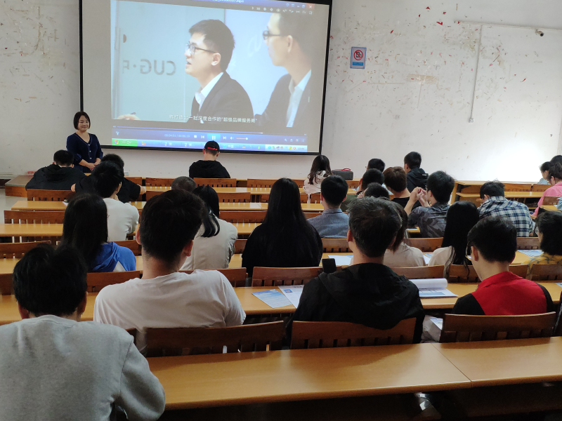 10月17日星期六10时至17时,浙江、深圳企业团,在我校启智楼8108教室召开招聘会。我系组织200余名毕业生参加,蒋女士代表企业团宣讲。