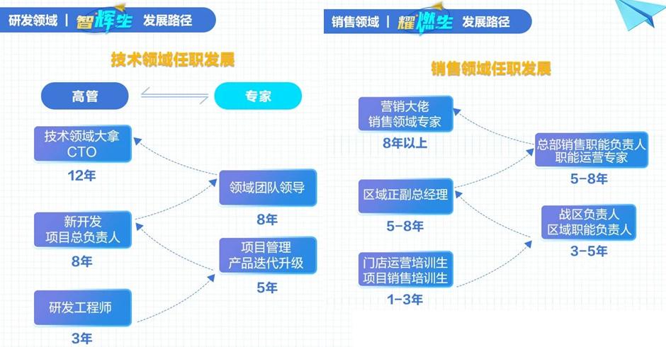 通过管理和专业双通道发展的牵引,员工可以选择适合自己的发展通道,在通道内逐级晋升发展;也可以转换通道,实现跨通道发展