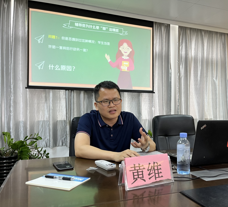 讲座上,黄维副教授围绕辅导员为什么要“聊”出情感、具体要“聊”什么情感、如何才能“谈”出实效、与学生“谈”的注意事项四个方面展开讲座。黄维副教授指出:一是辅导员要主动加强与学生的双向交流,在加深师生情感的同时增强教育效果,提高发现学生安全隐患的能力;二是辅导员要与学生合理交谈,调整学生心理平衡,教会如何控制情绪;三是辅导员要“谈”出实效,提出将集体性的教育与精准性的引导相结合,让思想问题与实际问题相结合的指导方略引导学生;四是辅导员要注意“谈”的事项,合理选择谈的地点、时机以及了解谈的对象,让学生更愿意敞开心扉。