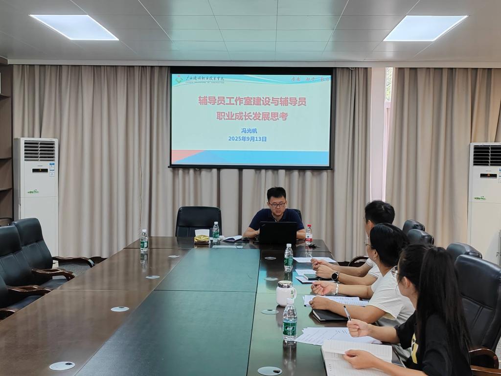 9月13日下午,我院于6406会议室开展“辅导员工作室建设与辅导员职业成长发展思考”专题讲座,我院特邀广西建设职业技术学院副教授冯光帆指导辅导员队伍专业化、职业化建设。会议由党委副书记兼学工组长何建金组织召开,近两年新入职辅导员参与本次会议。