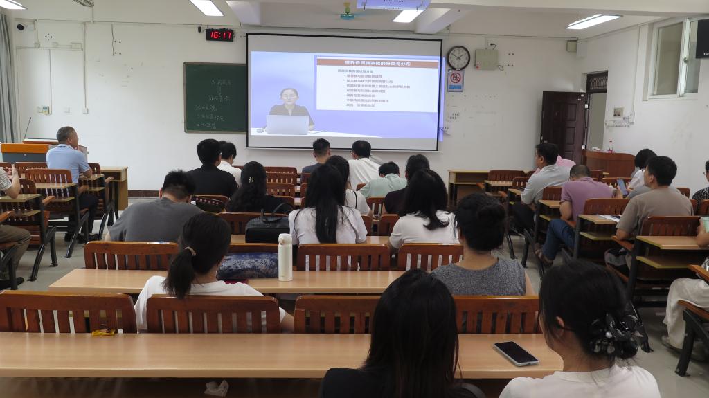 本次活动以集中观看网络视频的方式观看马方方教授的“‘多元一体’的中华民族与当代中国的民族宗教政策”专题讲座。讲座围绕中华民族“多元一体”格局形成的三个阶段、中国各少数民族文化的空间差异、宗教对地缘政治的影响和中国民族区域自治制度的特点,指出中国民族政策面临的挑战,以及中国为保障宗教信仰自由颁布的政策和作出的各种实践。