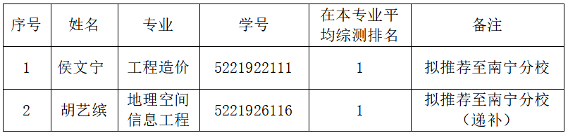 根据学校《伟德国际1946推荐优秀应届本科毕业生免试攻读硕士学位研究生工作管理办法》(桂理工研〔2023〕9 号)要求及学校2026年硕士研究生推免工作安排,按照公平、公正、公开原则,经学生个人申请,学院推荐工作小组审核评议,现将我院2026年推荐优秀应届本科毕业生免试攻读硕士学位研究生遴选结果予以公示: