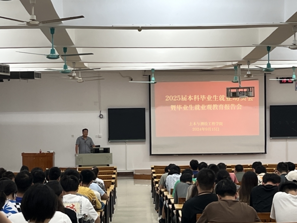 为引导毕业生树立正确的就业观,2024年9月15日下午,我院于8208教室召开2025届本科毕业班就业动员大会暨毕业生就业观教育报告会。本次大会由学院党委副书记何建金主持,全体2025届本科毕业班学生参会。