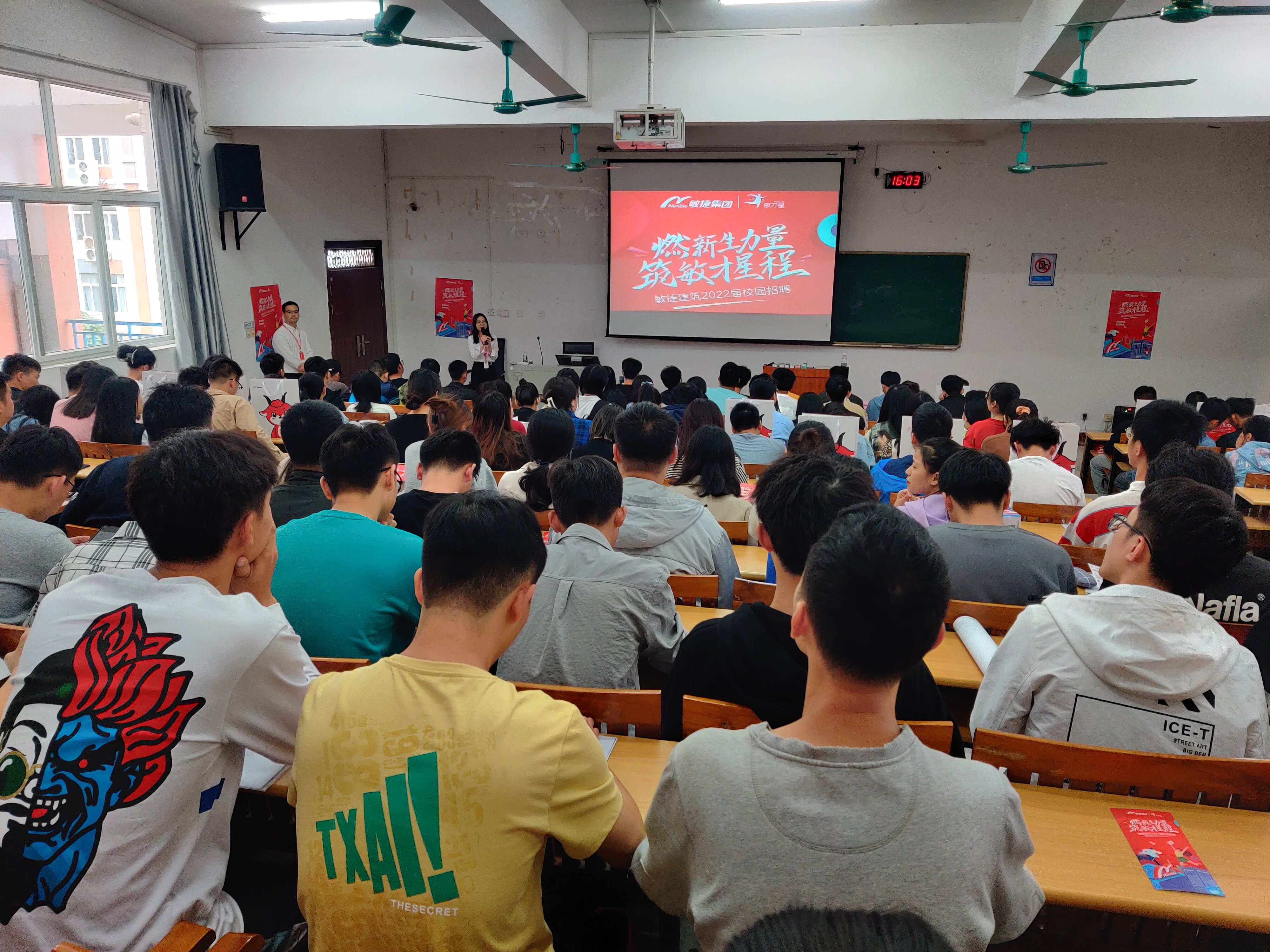 为促进我系2022届毕业生就业工作有序开展,切实提高毕业生就业质量。10月15日下午,梅州市敏捷建筑工程有限公司兰小龙一行在8306教室举办了“燃新生力量,筑敏才星程”2022届校园招聘专场宣讲会。分校近250名学生参加了本次线下宣讲会。