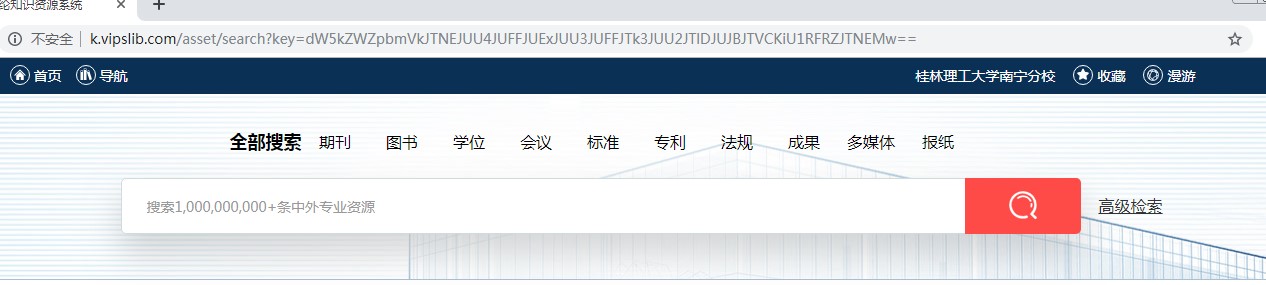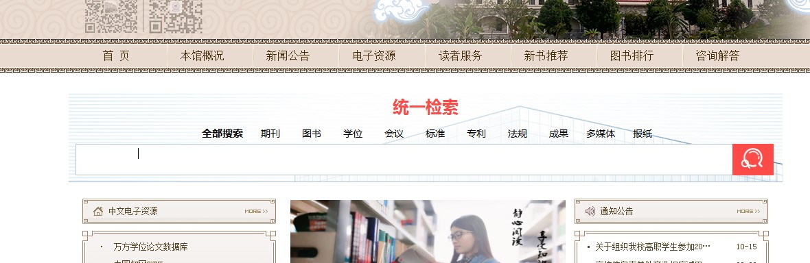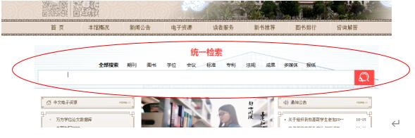 在校园网内打开图书馆网页,在搜索框中输入任意关键词