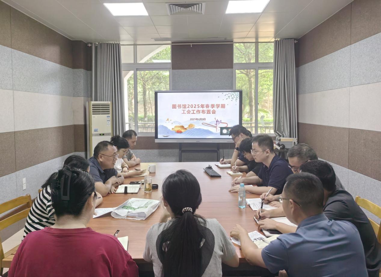 为进一步凝聚工会力量、明确新学期工作方向,4月9日下午,图书馆分工会在图书馆三楼研讨室召开了2025年春季学期工会工作布置会。会议由分工会主席谢晓明主持,图书馆分工会全体会员参加会议。