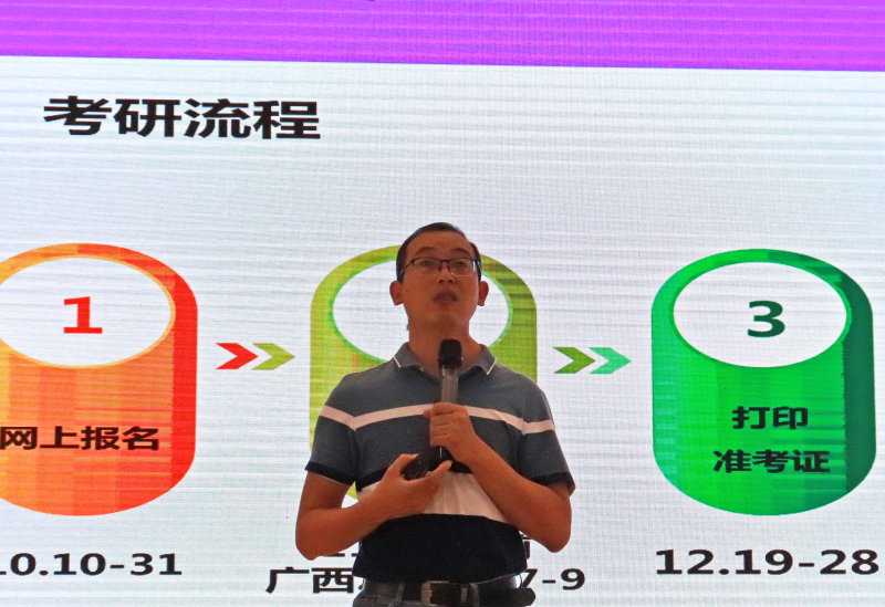 为了更好的提高学生对考研的理解及了解考研技巧。10月5日上午,我校于启智楼8408教室成功举办“考研宣讲会”主题讲座。主讲人刘高鹏教授用生动有力的例子向同学们解析考研面临的问题,让同学们更加充分的树立目标。