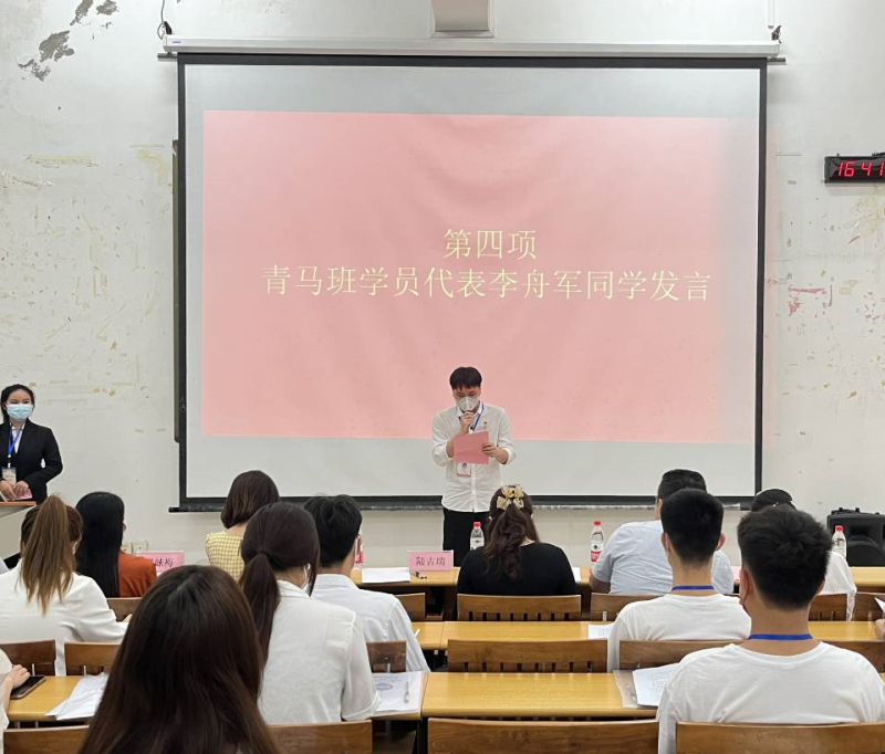 开班仪式上,系部党总支副书记兼学工组长陈曙钰老师宣读青马班班委任职名单。系部团总支书记陆吉瑞老师诵读致学员的一封信。学员代表李舟军从自我管理、自我激励、提高思想认识修养、作为学生干部应具备的条件、明确成为学生干部的动机、发挥学生干部模范作用六个方面向全体青马班学员作主题发言。