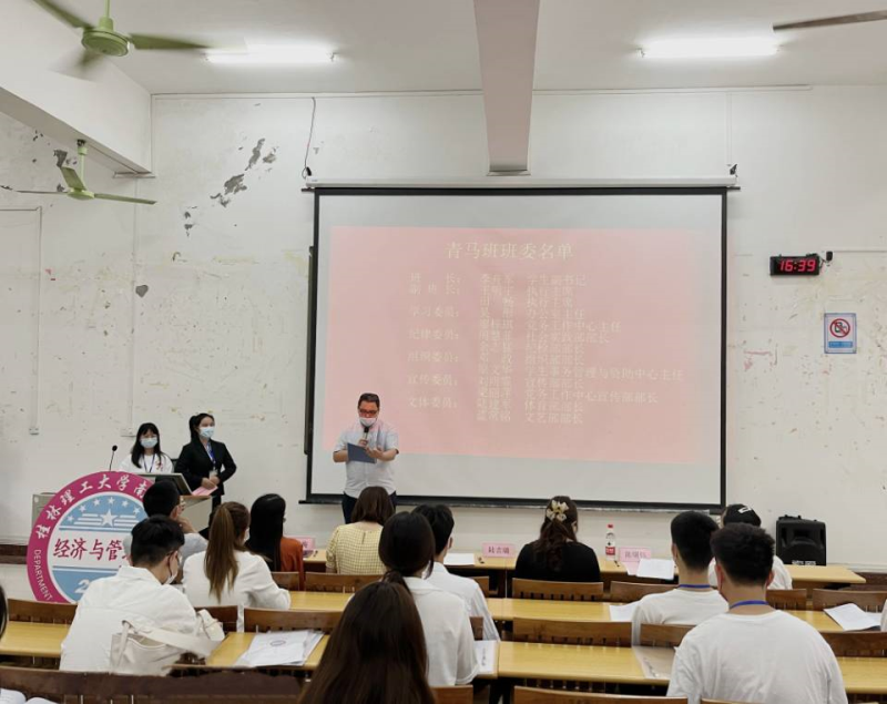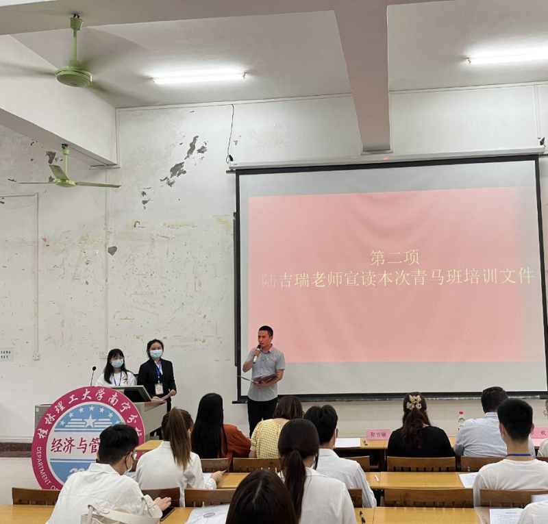 为进一步实施“青年马克思主义者培养工程”,培养优秀学生骨干,经济与管理系于2022年4月14日下午在启智楼8101教室举行青年青年马克思主义者培养工程开班仪式暨开班第一课。党总支书记张凯老师、党总支副书记兼学工组组长陈曙钰老师、团总支书记陆吉瑞老师、辅导员罗欢老师、秦敏老师和罗妹梅老师出席会议,青马班全体成员以及21级班长与团支书参加会议。
