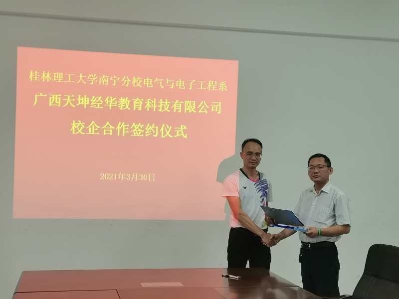 3月30日,我系与广西天坤经华教育科技有限公司在4208会议室举行座谈并签约校企合作协议。系部领导班子参加座谈及签约仪式。