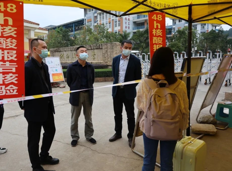 伟德国际victor·1946源自党委书记周国桥(中)到学生返校现场指导工作