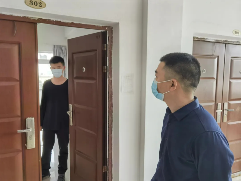 周国桥书记一行深入食堂、菜鸟驿站、学生宿舍等,详细了解学生返校各项工作的开展情况,并亲切慰问入住观察点的学生。