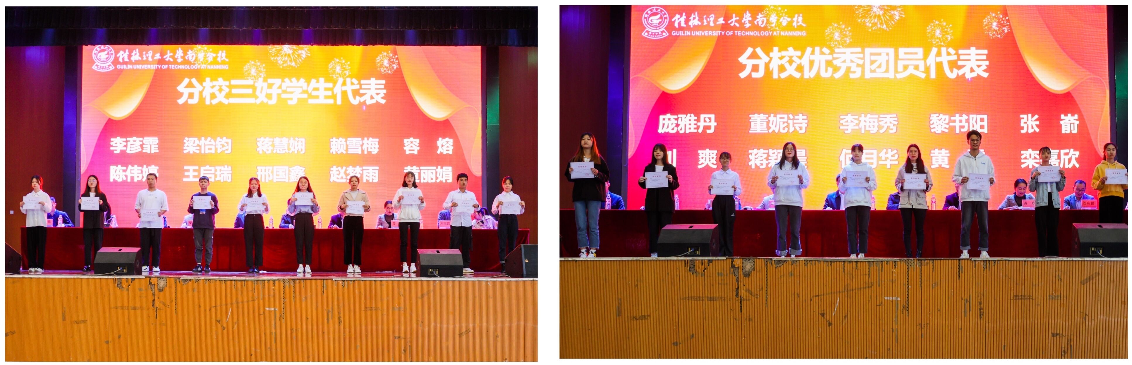 分校副校长马华菊、副校长苏欣先后宣读了2019-2020学年度学生工作系列表彰文件,对分校2019-2020学年度2个“学生工作先进集体”,23个“先进班集体”,23个“‘五四’红旗团支部”,152间“文明宿舍”,691名“三好学生”,154名“优秀学生干部”,121名“优秀团员”,104名“优秀团干”,1377名“科技活动月”获奖学生,57名科技活动月“优秀指导教师”,9名“优秀辅导员”,45名“优秀班主任”,5名“学生工作特殊贡献奖”进行表彰。现场,与会领导相继为获奖集体和个人颁奖,并勉励同学们向优秀代表学习,不负青春,珍惜韶华,努力成为勇于担当的时代新人。