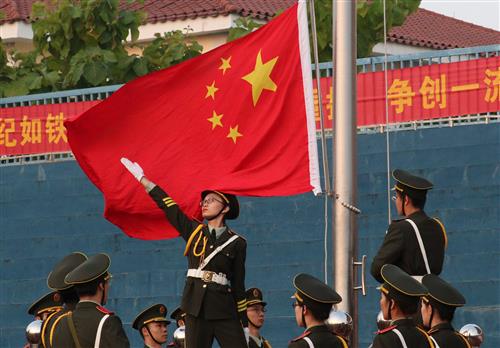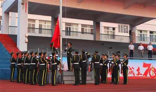 上午7时,国旗在英姿飒爽的国旗护卫队员护送下入场,伴随着庄严的国歌声,五星红旗冉冉升起迎风飘扬,在场的全体领导、师生高唱国歌行注目礼,以昂扬饱满的姿态庆祝新中国成立70周年,共同祝愿伟大祖国繁荣昌盛。