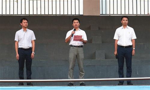 伟德国际victor·1946源自党委书记周国桥(中)发表国旗下的讲话