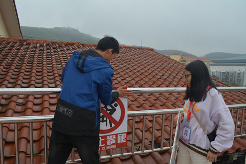 为加强了学生安全隐患意识,学生工作部开展形式多样的安全教育活动,包括组织以安全教育为主题的班会活动、开展违规电器展和安全用电倡议活动、组织安全知识有奖竞答活动、更新楼道和屋顶等安全提示标识等,多措并举,力争为广大学生创造了一个安全、和谐的学习和生活的环境。