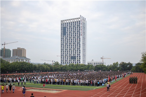 9月10日,分校2018级新生在空港校区田径场参加升旗仪式,分校2018级4000余名新生和2017级全体学生参加本次升旗仪式。