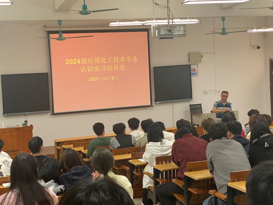 为进一步增进学生对化工专业的了解、提升专业学习兴趣,12月8日下午,我院在启智楼8203教室召开2024级应用化工技术专业认识实习动员会。实习指导老师赵义、冯桂芬、张艳玉、李赞超及辅导员杨波出席会议,2024级应用化工技术专业全体学生参加。