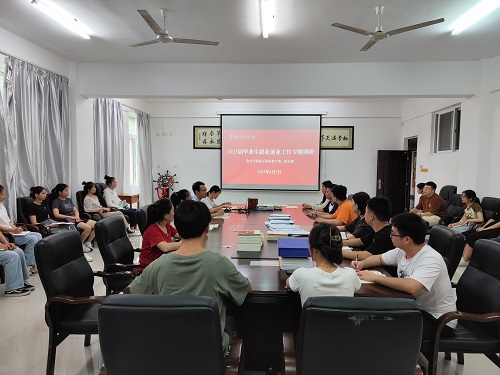 在6月6日下午面向教职工的专题调研会上,党总支书记石有总通报了近期系部2023届毕业生去向落实率情况,分析了当前毕业生就业存在问题的原因。随后,与会毕业班班主任指出了当前个别学生有离职换工作想法、个别学生慢就业等情况,并提出要加强班主任、辅导员和指导老师间的协同配合,形成工作合力等工作想法。支部书记何贵香表示党员同志要以身作则,主动加强同毕业生的联系,做好就业推荐和帮扶。