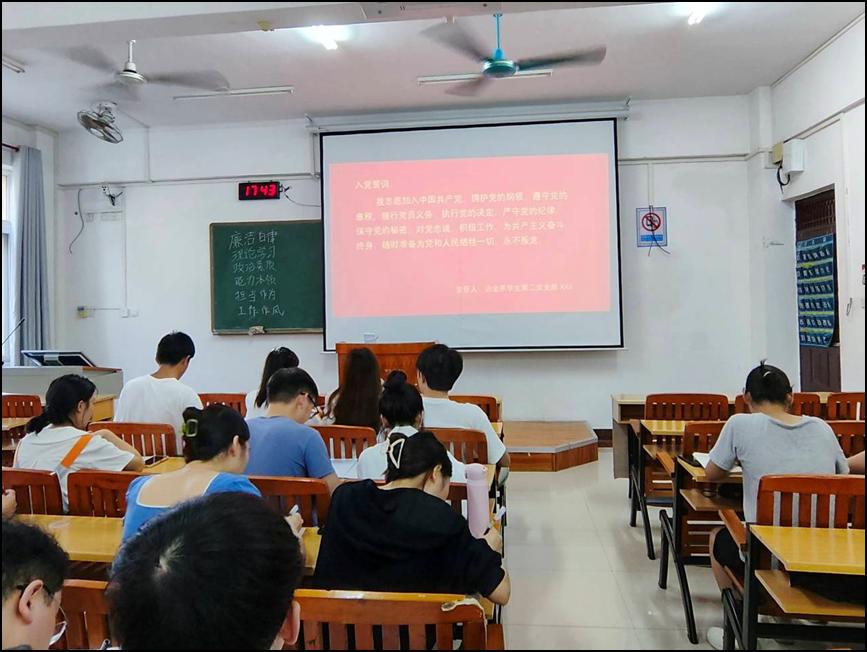为深入学习贯彻党的二十大精神,7月2日,我系学生第二党支部在探源楼5205教室开展“重温入党誓词,践行初心使命”主题教育。活动由党支部书记方艳同志主持,全体党员参会。