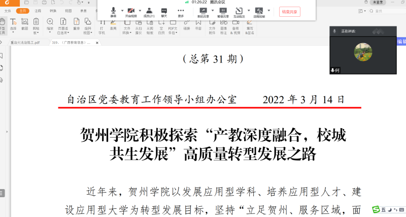 何贵香对贺州学院产教深度融合转型发展之路进行介绍