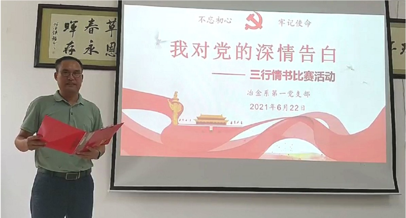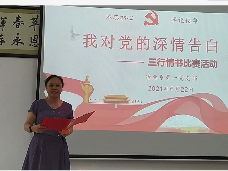 在“七一”来临之际,为庆祝中国共产党成立100周年,讴歌建党100年来的光辉历程和改革开放的伟大成就,进一步引导党员不忘初心、牢记使命,6月22日下午,我系教工第一党支部开展“我对党的深情告白”主题党日活动,书写颂党爱党三行情书。