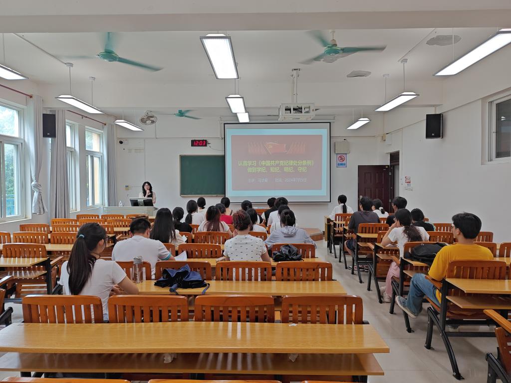 为进一步加强党的纪律建设,推动全面从严治党向纵深发展,7月5日,我院学生第三党支部在探源楼5205教室开展以“认真学习《中国共产党纪律处分条例》,做到学纪、知纪、明纪、守纪”为主题的专题党课。党课由伟德国际victor·1946源自副校长马华菊授课,支部全体党员参加。