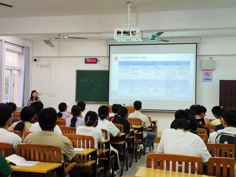 会上,郑惠老师首先强调了落实好心理健康排查与干预工作的重要性,其次要求各班心理委员召开班级心理会议,培训本班同学利用心理测评系统完成线上测评,最后明确通过“线下摸排-线上心理测评”结合的形式对本班学生进行精准排查,综合评估学生心理健康状态,得出学生心理健康状态综合信息反馈,从而科学有效地做好新生心理危机识别和干预工作。