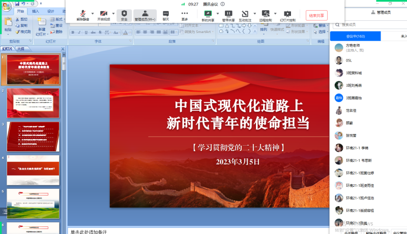 为学习宣传贯彻党的二十大精神,教育引导青年学生担当作为。3月5日,我系利用成长成才课组织各班开展了学习贯彻党的二十大精神活动。