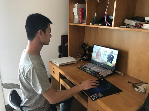 我系学生正在收看“大学生消防公开课”网络直播(4)