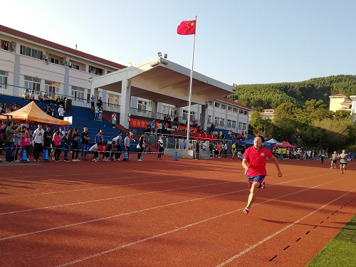 在男子组4×100接力赛中,石有总、黄运堪、黄文富、王震4位老师不负众望,迈着飞快的步伐奔向终点,最终将第二名的成绩收入囊中。