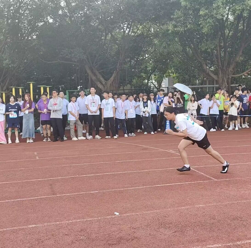 11月9日上午,我系化工23-4班覃颢雨同学在现场观众的震耳欲聋的呐喊加油声中以14秒56分的优异成绩取得了女子组100米比赛的第一名。