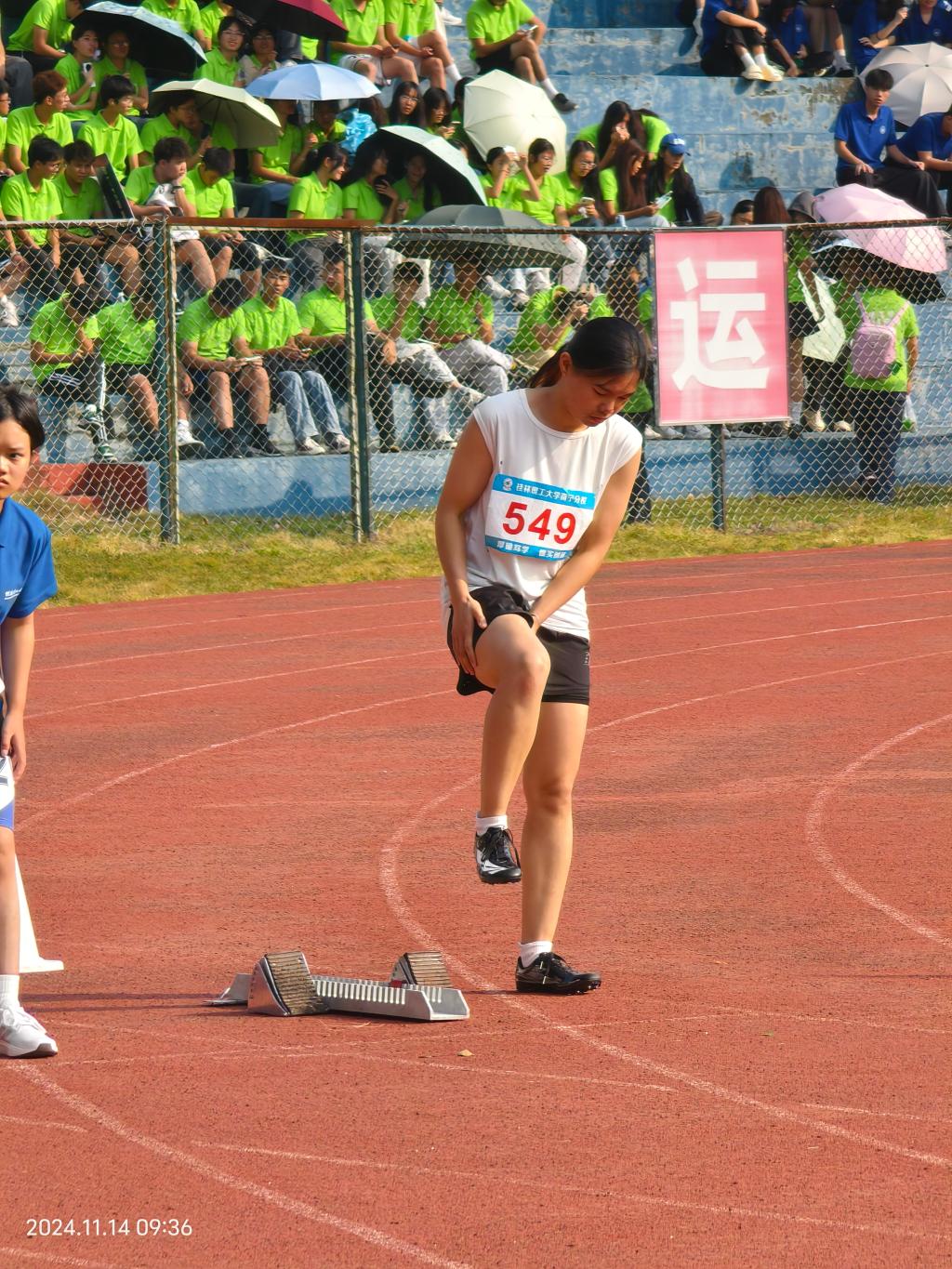 在11月14日的学校运动会中,我院的覃颢雨同学凭借出色的表现,在女子100米项目中荣获第二名。在激烈的角逐中,她以坚定的步伐和顽强的毅力,展现了自己的实力与风采。