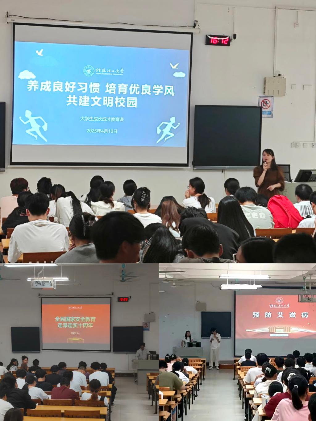 一是开展安全文明知识教育活动。学院利用早晚自习、班会及成长成才课组织开展国家安全主题教育、文明礼仪教育及预防艾滋病等相关主题教育,并通过举办大学生安全知识竞赛等方式,对全院学生开展全覆盖的安全教育培训引导。此外,学院还组织开展学风督察劝导行动,通过持续组织学生志愿者开展学风督导行动,引导学生养成良好的行为习惯。