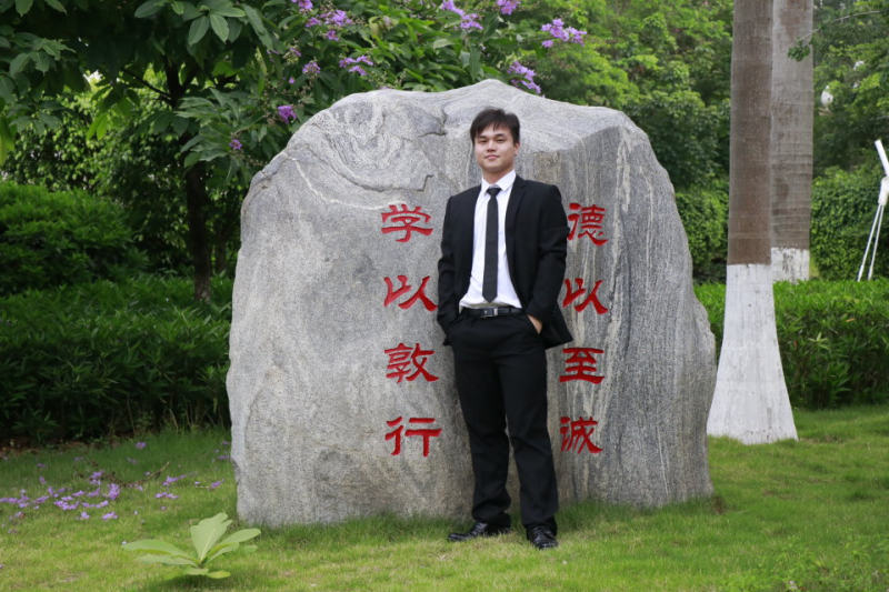 由于对化学的热爱,他在大学选择了化工专业,热爱学习,刻苦勤奋。 自大一至大三担任学习委员,在学习当中时刻提醒着自己努力学习专业理论知识,四大化学都在85分以上,综合素质能力测评都名列前茅。在这儿两年里,他先后取得优秀成绩:两次荣获“三好学生”称号 ;2017年在军训期间中表现突出,特授予“军训先进个人”称号;两次荣获校级奖学金,以及一次国家励志奖学金;曾在国旗竞赛活动中获得竞赛一等奖,此外还积极参与学校的各种活动,党规党章知识竞赛优秀奖、在入党过程中成为了第20期入党积极分子优秀学员,2019年参加广西区级化学竞赛三等奖。