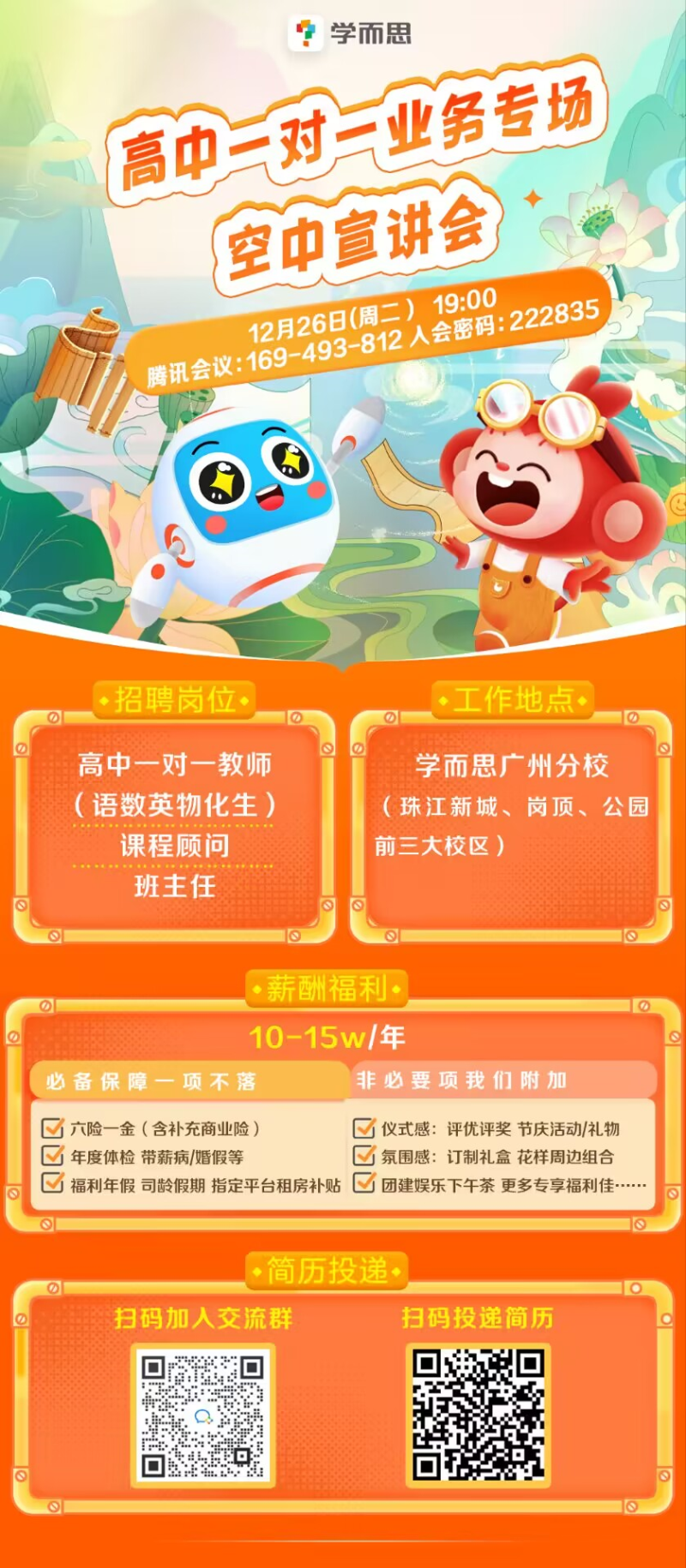校招岗位:高中一对一教师(语数英物化生) 10-15w/年
